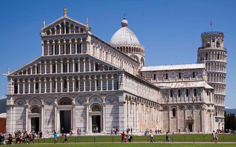 건축에 있어, 원통형궁륭과 교차궁륭을 주로 썼는데, <피사사원>, <생 세르냉 대성당>에서 보듯이 견고하고 고요, 편안, 유연하다. 고딕양식과 비교했을 때, 로마네스크 교회는 둥근아치와 양식화된 조각이 눈에 띄며 어둡고 엄숙하며 외부장식도 비교적 단순하고 엄격하다. 반면에 고딕성당은 뾰족한 첨두 아치와 자연스러운 조각에 밝고 경쾌하며 외부에 다양한 조각상을 보여 준다.