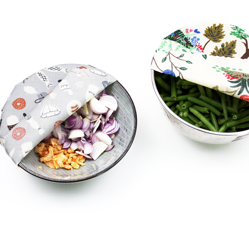 천연 섬유에 비즈왁스를 덧입혀 만든 비즈왁스 랩은 플라스틱 음식물 포장재의 한 가지 대안입니다. 수분을 흡수하지 않고, 유연하며, 6개월에서 1년까지 재사용할 수 있습니다. 미니메이커스MINIMAKERS는 2018년부터 싱가포르에서 비즈왁스 랩을 생산하고 있는 업체입니다.