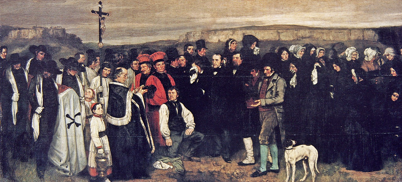 쿠르베는 사실주의 운동의 아버지로 실용주의를 신봉했다. '회화는 구체적 예술이고, 실재 존재라는 사물이어야 한다'고 주장했는데, <오르낭의 매장>에서는 6.7m의 커다란 캔버스에 시골장례식의 평범한 농부들을 소재로 사실적으로 묘사해 냈다. <내 화실의 내부>로 파리 부르주아 예술 관객의 엘리트 의식을 비판하며 사실주의 전시관을 열어 단독 전시회를 갖기도 했으며, 이러한 사실주의의 저항의지는 현대 예술에 매우 중요한 속성이 되기로 했다. <돌 깨는 사람>에서는 노동자 계층을 현실감 있게 그려냈으며, 그로테스크한 풍자 캐리커쳐 위주의 작품을 그렸다.