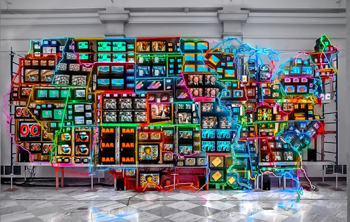 <전자 초고속도로: 미국대륙, 알래스카, 하와이>는 스미스 소니언에 설치되어 있는 작품으로 336개의 TV, 50대의 DVD플레이어, 거대한 다색 네온 튜빙으로 다양한 연방제 국가를 표현하고 있다. 각 주별 색다른 정체성과 특징을 비디오 클립으로 표현한다.