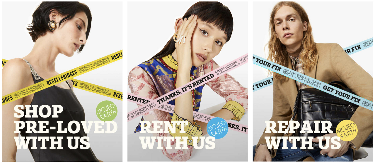 또한 Peer To Peer 패션 렌탈 서비스인 Hurr Collective와의 파트너쉽으로 고객들은 그들의 오프라인 매장과 온라인을 통해 나온 제품들을 셀프리지에서 렌탈할 수 있는 기회를 갖게 될 것이다. 셀프리지의 리페어 컨시어지는 고객이 필요한 서비스를 위해 매장 내 상담과 온라인 상담을 통해 제품을 신속하게 수리할 수 있도록 돕는 것을 목표로 한다. 셀프리지의 "프로젝트 얼스Project Earth"는 지난 8월 중순을 시작으로 브랜드 파트너들과 협력하여 가상 패션에서 친환경적인 방식으로 식사하는 방법 등과 같은 관련된 컨텐츠들을 사용하여 8주간 이 프로젝트의 컨셉, 전략, 토크로 프로젝트 어스 론칭에 관한 캠페인이 진행중이다.