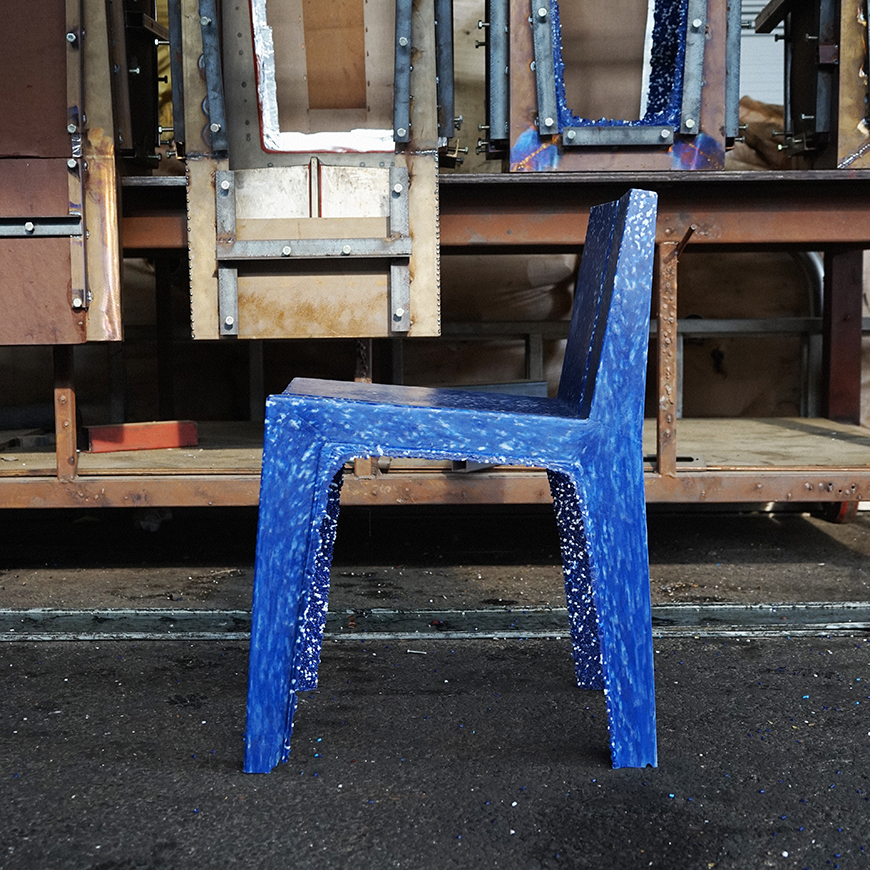 플라스틱 오브제 Crispy Rice Collection는 실제 누룽지를 만드는 것과 동일하게 제작되었다. 가구 형태의 금속 몰드를 제작하고, 나무 합판으로 플라스틱 플레이크가 쏟아지지 않게 구멍을 메워 200도의 오븐에 집어 넣는다. 높은 온도에서 플라스틱은 녹으면서 금속 몰드 표면에 달라 붙게 되고, 온도가 식어지면 굳으면서 몰드에서 떨어져 나와 가구가 되는 것이다. 가구의 겉면은 매끈하고 안쪽은 누룽지의 쌀알처럼 플라스틱 알갱이들이 엉겨 붙은 모습이 그대로 노출된다. 자원낭비를 줄이기 위해 금형은 최소한으로 설계되어 미니멀한 감성을 자아낸다.