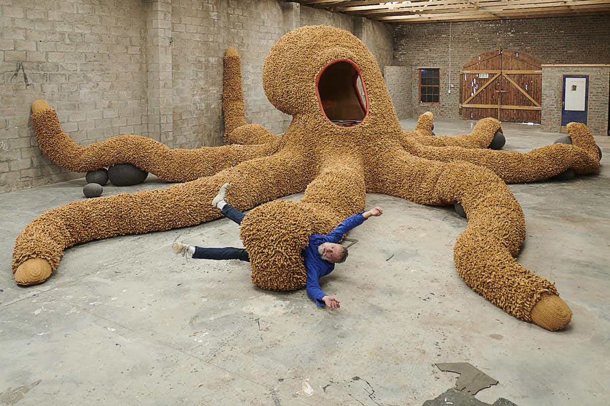 첨단기술에서 자연으로 이동해보자. 방문객은 Porky Hefer의 작품 [Marine Mutants, 2020]과 마주하게 된다. 남아프리카 케이프타운의 Hefer그룹은 디스토피아 미래의 가상 해양 생물체가 사는 상상속의 세계를 재현하고 이를 “Plastocene”이라고 불렀다. 가상 해양 생물체는 펠트 담배꽁초로 만든 거대한 문어 같은 돌연변이 생물을 말한다. 이 작품 세계는 인류 시대의 끝은 비닐봉지, 빨대, 커피 컵 및 기타 오염 물질들이 변형, 흡수되어 새로운 종이 나타날 수 있음을 보여 준다. 인간은 오염된 환경에서 살아남기 위해 고군분투할 것이며, 이에 따라 돌연변이도 번성할 것이라는 메시지를 엿볼 수 있다.