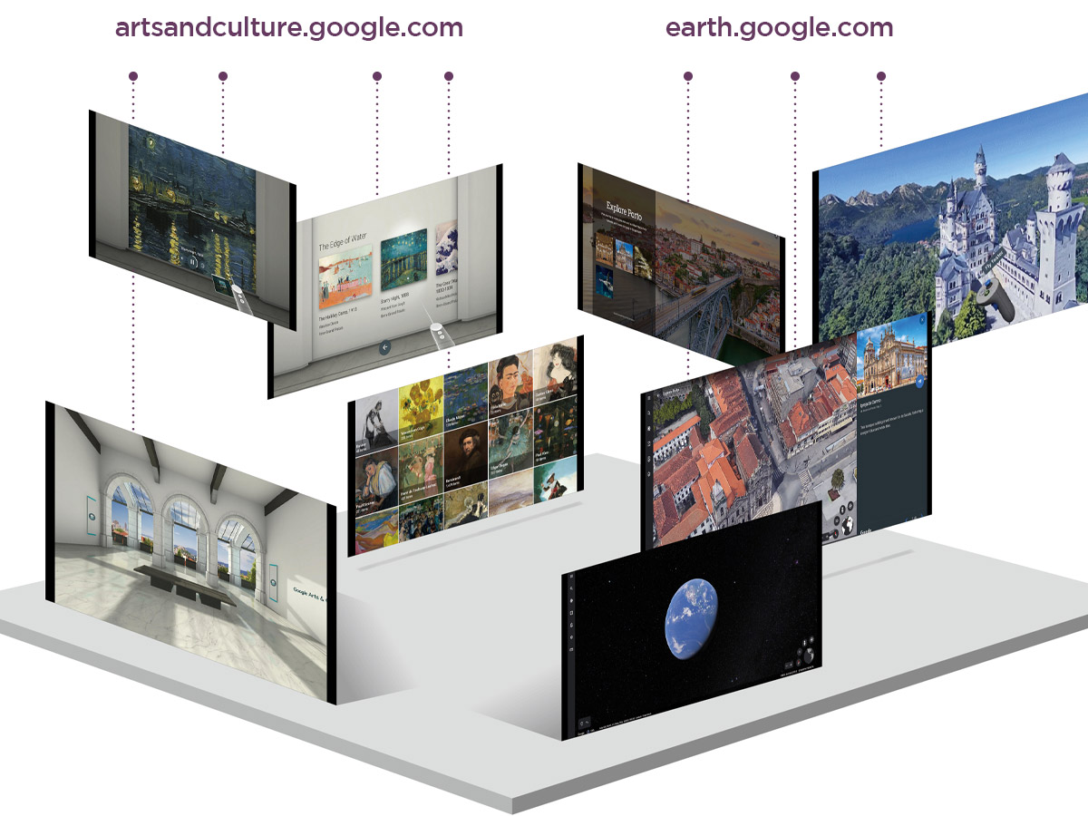 줄을 서지 않아도, 돈을 내지 않아도 유명 박물관과 미술관을 마음껏 둘러볼 수 있다. 아트 여행을 원한다면 구글 아트 앤드 컬처 웹과 앱을 방문하여 보자. 2500개 이상의 전 세계 박물관과 미술관을 온라인으로 볼 수 있고, 360도 공간을 둘러보는 가상 투어에 참여할 수도 있다. 휴대폰을 이용해 가상 미술관을 침대 위에 올려놓는 것도 가능하다. 바로 포켓 갤러리 기능이다. 휴대폰 카메라를 이용해 실제 공간에 3D 미술관을 세우고 휴대폰 움직임에 따라 공간을 이동하는 식이다. 일반인에게 공개하지 않는 프랑스 소베 동굴의 선사시대 벽화나 베르사유 궁전의 21개 방을 구경할 수 있다.