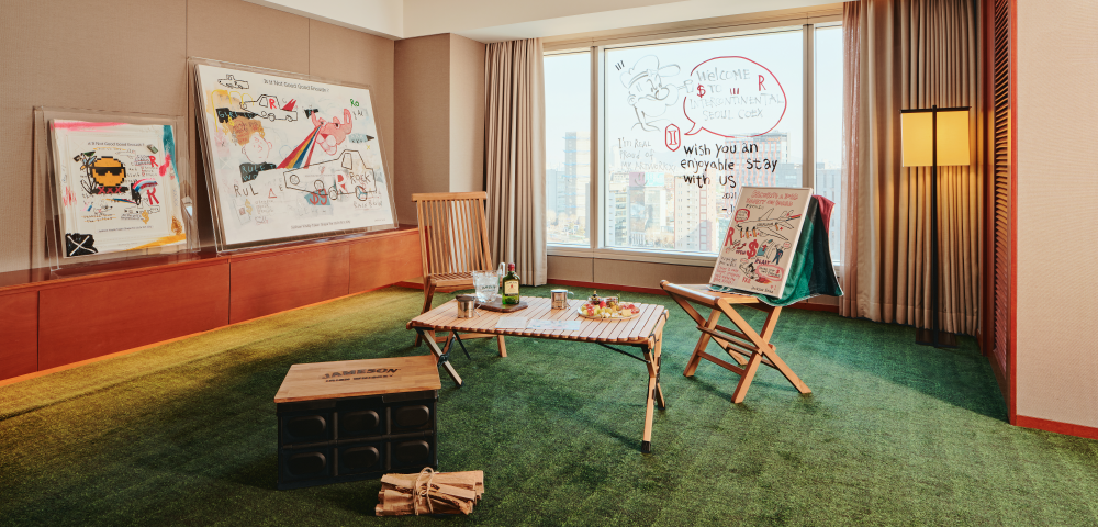 호텔 객실 안에 준비된 나만의 프라이빗 갤러리를 만나보십시오. 팝 아티스트 ‘잭슨 심’과 함께 갤러리처럼 꾸민 공간 그리고 객실에서 즐기는 위스키 한잔의 여유까지. 문화와 예술 애호가