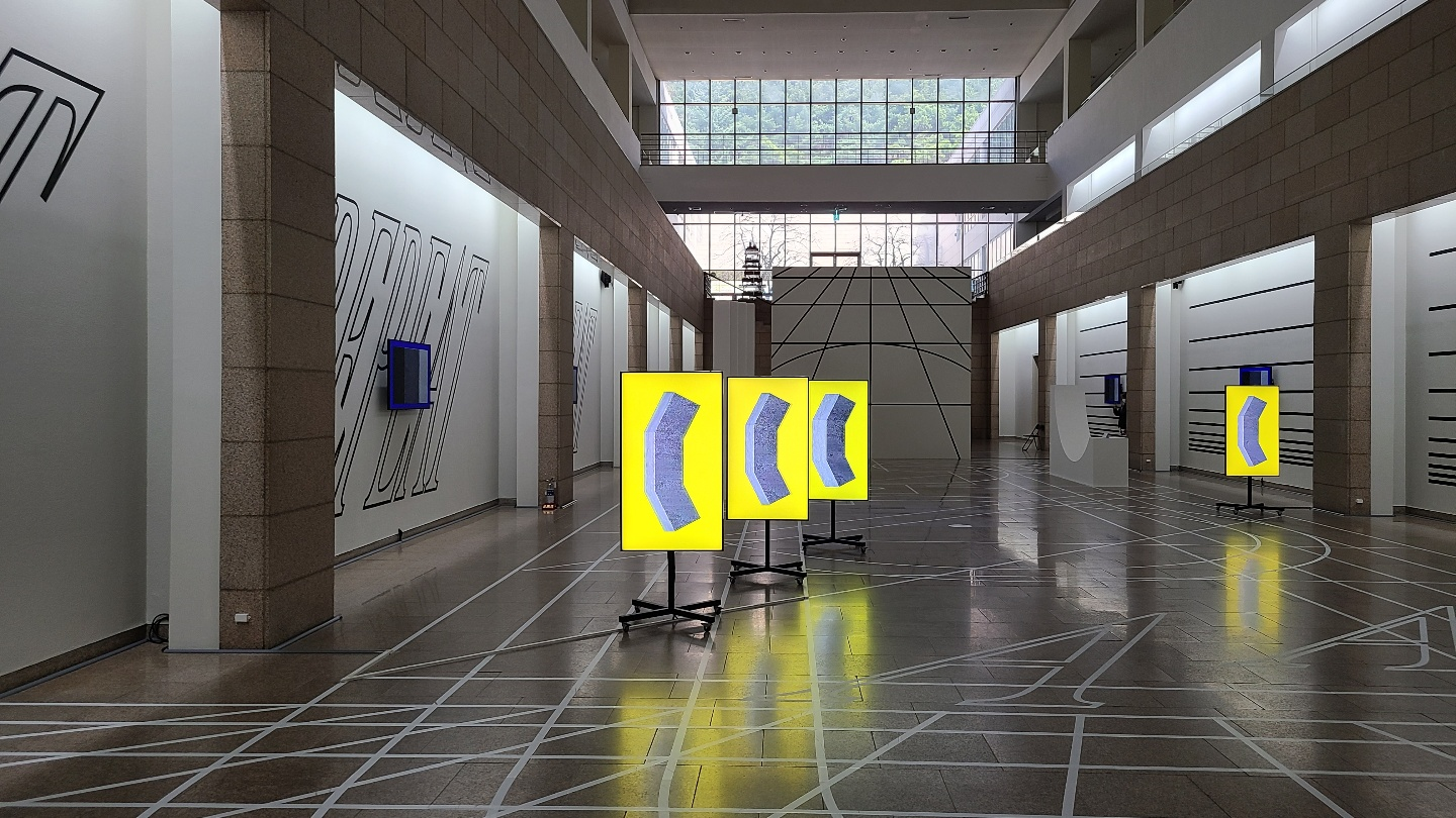 진달래&박우혁의 <마스터 플랜: 화합과 전진>은 88 서울올림픽 전후 사회와 문화를 아우르는 이미지와 건축 디자인의 패턴을 중첩하고 반복해, 시간, 운동, 소리, 구조가 결합된 가상의 무대를 중앙홀에 연출한다. 건축・디자인의 시각적, 구조적 질서와 각종 경기장의 규격은 선과 단위가 교차하며 특정 공간을 형성하는 공통점이 있다. 비체계와 체계, 아날로그와 디지털, 평면과 입체, 정면과 측변이 중첩되는 장면은 그 시대를 통해 현재 사회를 돌아보는 계기를 마련한다. 이 공간이 이렇게 멋져 보인 적은 없었던 것 같다.