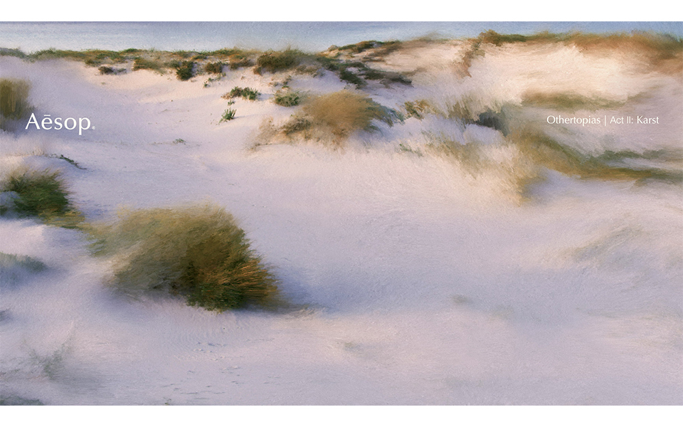 이솝(Aesop)은 새로운 프래그런스, 아더토피아를 깊이 있게 경험할 수 있는 전시를 개최한다. 이탈리아 미디어 아티스트 '다비데 콰욜라'와 협업해 조성된 공간은 감각적 디지털 경험을 선사한다고 한다.경계가 모호한 공간 속 시적인 광경을 구현한 전시 공간은 1막: 미라세티부터 2막: 카르스트, 3막: 에레미아으로 구성됐다.