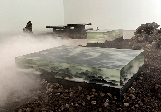 레진을 재료로 스케일과 독특한 기법을 구사해 세간에 관심을 받아온 전아현 작가는 이번 전시에서 작가의 내면에 고여 있는 상실과 고독의 덩어리를 심산에 흩뿌려 스스로의 정화를 시도한 작품을 선보인다. 흑과 백을 넘나드는 그만의 '그레이 gray' 톤을 산맥을 채우거나 하늘의 운무로 띠워 산수화의 담담한 서정으로 그려냈다. 작가는 “빛이 머물다간 산골짜기의 모노톤 사이로 한 시절의 상실과 체념을 먹(黑)의 풍경으로 은폐했다.”고 고백한다.