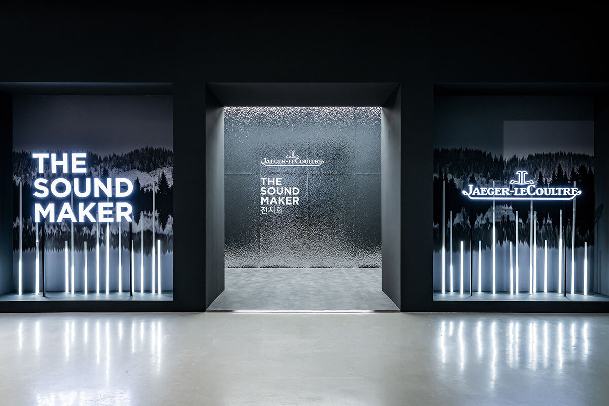 예거 르쿨트르는 한국에서 최초로 시계 전문 브랜드로서의 단독 전시를 진행했다. Sound Maker라는 전시 타이틀에 걸맞게 전시의 콘셉트는 르쿨트르의 기원이라 할 수 있는 차임 시계의 본고장, 스위스 발레드주의 자연의 소리이다.