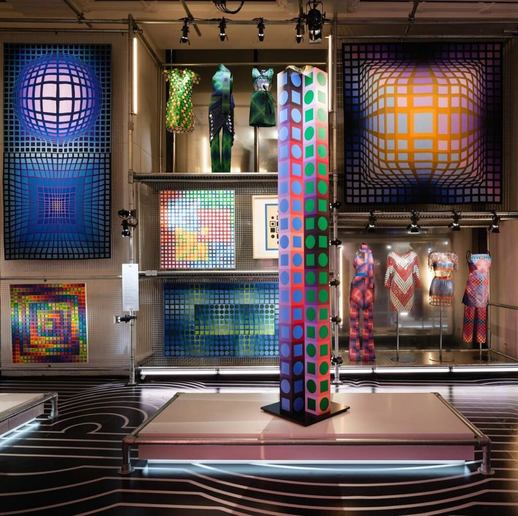 유니버스는 또한 파코라반의 2022SS 출시를 기념한다. 이 브랜드의 크리에이티브 디렉터 쥴리앙 Julien Dossena는 바살렐리의 패턴을 프린트, 자카드, 세퀸 패브릭에 차용하였다.