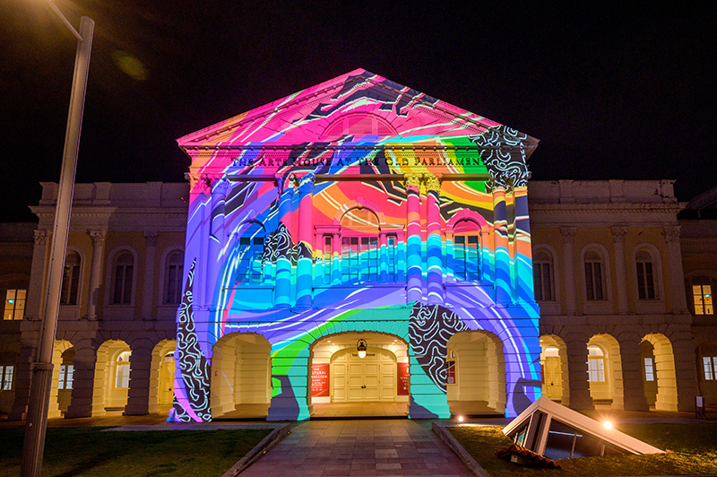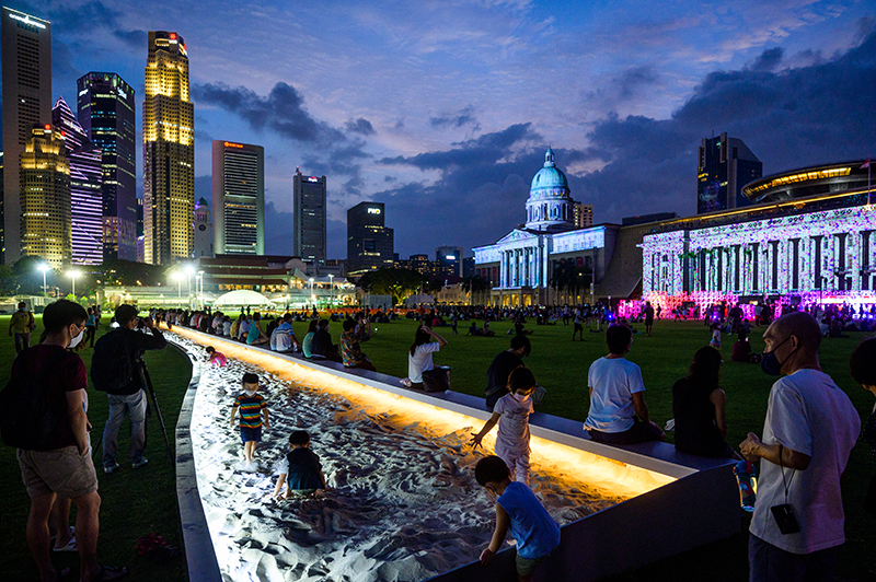 싱가포르에는 전 세계의 조명 디자이너와 아티스트들에게 거리를 내어주고, 밤을 빛으로 수놓게 하는 페스티벌, ‘라이트 투 나이트Light to Night 2022’이 삼 주간 열리고 있다. 이번 해 페스티벌 테마는 ‘새롭게 보고, 생각하고, 존재하는 방법New Ways of Seeing, Thinking and Being’으로, 조명이 표현할 수 있는 다양한 색감과 밝기 전환을 기술적으로 실험하고, 싱가포르의 문화적 뿌리를 디자인 아이콘으로 표현해 온 기존의 페스티벌과 차별화를 꾀했다. 추상적이고 큰 담론이지만, 팬데믹으로 여전히 고립되고, 흔들리는 삶의 근간에서 질서를 잡기 위해 애쓰고 있는 사람들의 상상력을 자극해서 마음속의 자유를 누리게 하는 동시에, 잠깐의 쉼과 환기로 현실을 돌파해나갈 힘을 얻게 하는 것이 근본적인 목적이다.