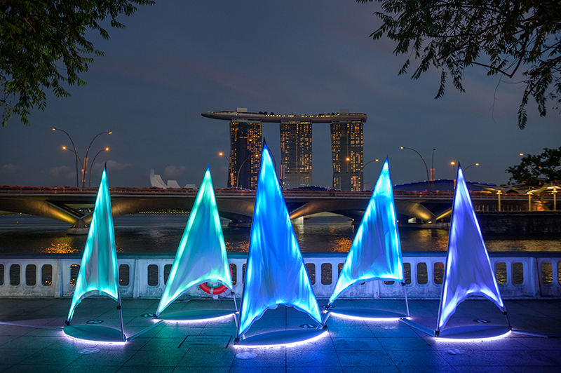 싱가포르의 디자인계와 예술계도 팬데믹의 타격을 받은 상황이라, 페스티벌 프로그램과 설치 디자인 공모에 예년보다 많은 참가자가 몰렸고, 공모 당선작들은 60여 개의 작품과 프로그램으로 만들어졌다. 이번 페스티벌은 팬데믹으로 가장 큰 경제적 타격을 받은 싱가포르 디자이너와 예술가들이 작품으로 도시민들을 위로하기에 뜻깊고, 지난 삼 년간 프로젝트 기회가 현저하게 줄어 고통받는 창작자들에게 페스티벌 참여 경험을 주기 위해, 경험이 부족한 참여자들도 선발하고 기술지원과 디자인 멘토링 지원을 해준 주최측의 준비 과정도 인상 깊다. 규모와 형태를 달리하는 각종 설치물과 파사드 아트가 싱가포르의 강변과 시내 전역을 따라 빛으로 흐르며, 설레는 밤 정취를 자아내고 있다.