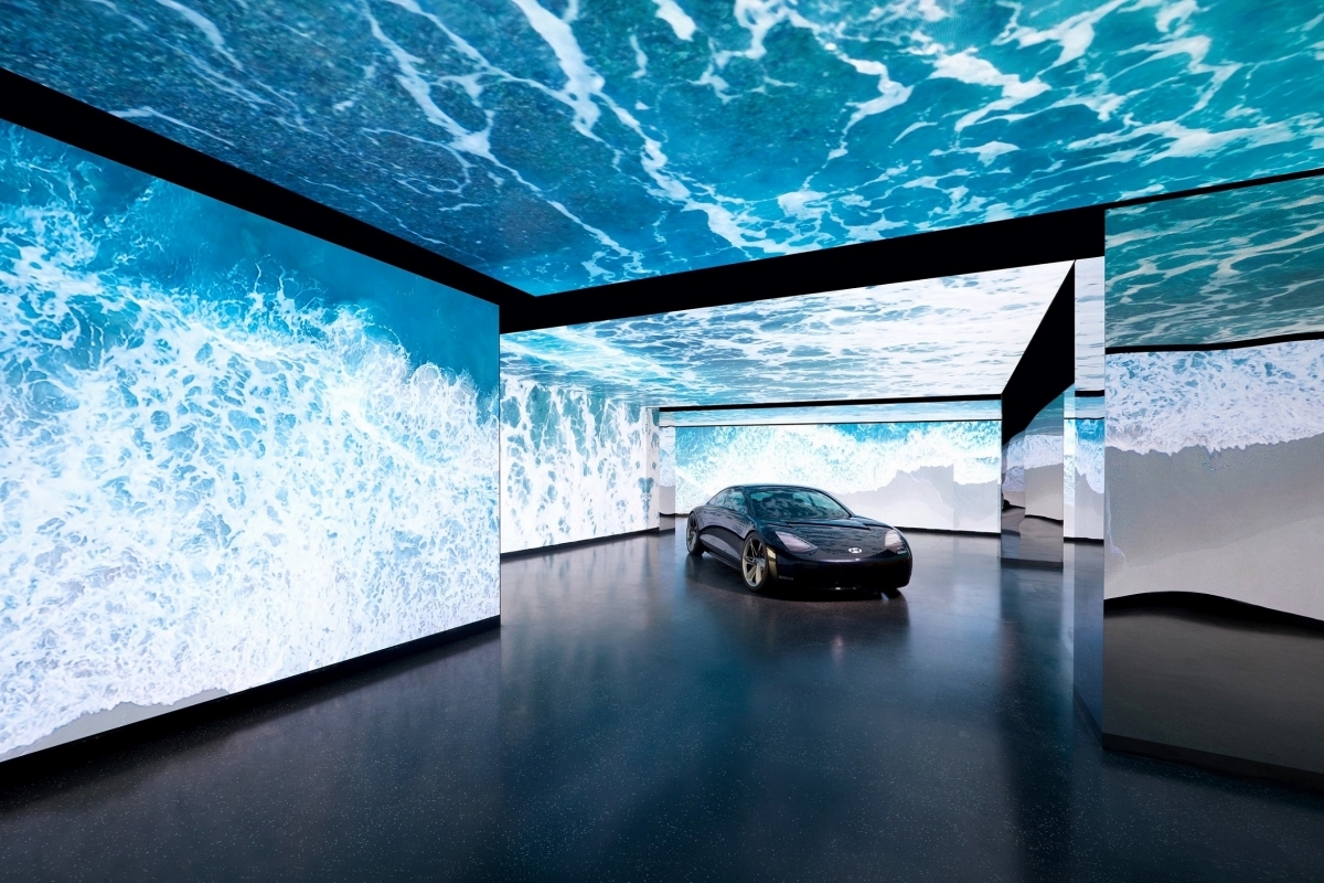 메인 전시공간에는 현대자동차 EV 콘셉트카 '프로페시'가 전시되어 있으며, 벽면부터 천장까지 스튜디오 전체를 둘러싼 LED 미디어 월을 통해 현대차의 '클린 모빌리티' 비전 영상 등 다양한 미디어 콘텐츠를 제공한다. 영상은 영국의 미디어아트 그룹 '유니버설 에브리띵'과의 협업으로 바다에 버려진 플라스틱 쓰레기가 친환경 섬유로 재활용되는 과정을 생동감 있게 표현한 '리:사이클(Re:Cycle)'을 비롯해 3가지 테마의 옴니버스 영상으로 구성되었으며, 환경 문제에 감수성이 높은 인도네시아 MZ세대들의 많은 공감을 불러일으킬 것으로 기대하고 있다. 미디어 월은 현대 모터스튜디오 스나얀 파크의 대표 콘텐츠로, 현대차는 향후에도 다양한 글로벌·로컬 아티스트와의 협업을 통해 고객과 소통할 수 있는 지속가능한 아트 플랫폼으로 미디어 월을 활용해 나갈 계획이다.
