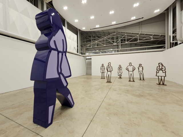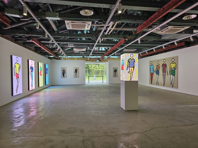 이번 전시에서는 작가가 새로운 창작의 모티브로 삼은 ‘춤추는 사람들’의 모습을 표현한 작품을 만날 수 있다. 국제갤러리 부산점에는 춤을 추는 사람들의 모습이 담긴 LED 영상 작품이 집중적으로 소개된다. 춤 동작에 집중하기 위해 머리나 팔다리가 최대한 단순하게 표현되어 있다. 줄리안 오피 작가는 우연히 틱톡에서 셔플 댄스를 추는 사람들의 모습을 본 것이 작업 계기가 됐다고 밝혔다. 경쾌한 음악을 들으며 춤추는 사람들의 LED 영상을 볼 수 있다. 같이 전시된 회화 작업까지 그 움직임이 전달되는 느낌을 받을 수 있다.