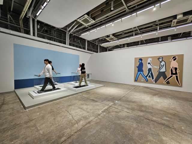 석천홀에서는 줄리안 오피가 부산 해운대와 센텀시티의 사람들 모습을 담아낸 작품 ‘워킹 인 부산(Walking in Busan).5.’가 관람객을 기다린다. 대형 회화 작업 옆에 설치된 4대의 러닝 머신에서는 걷는 퍼포먼스가 진행된다. 관람객이 직접 걸어볼 수 있는 참여형 작품이다.