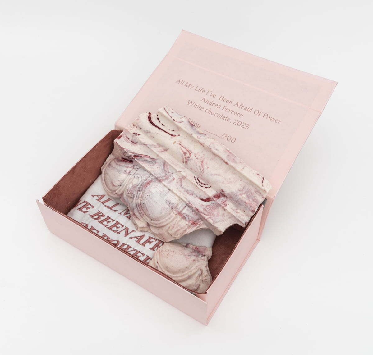 서울 삼청동 갤러리신라에서는 멕시코 작가 안드레아 페레로(32)의 전시가 열리고 있다. 전시장에는 그리스·로마 시대 신전의 폐허를 연상시키는 흰색과 분홍색 조각이 가득 널려 있다. 얼핏 보면 대리석이지만, 실제로는 화이트초콜릿이다. 이준엽 디렉터는 “국내 첫 식용 조각 전시”라고 설명했다.