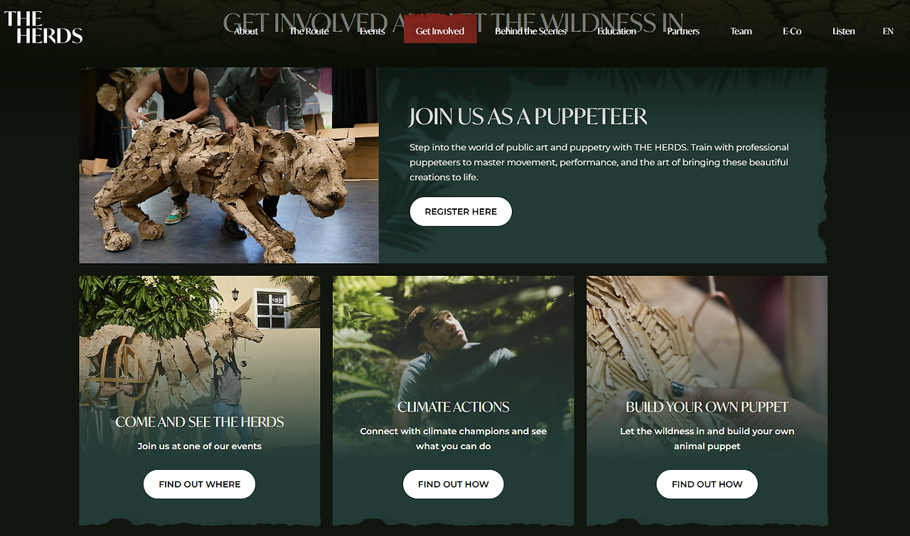 A public art and climate initiative from April–August 2025: life-size puppet animals travel 20,000km from the Congo Basin to the Arctic, fleeing climate disaster. Events and performances unite arts and science in an urgent call for climate action.