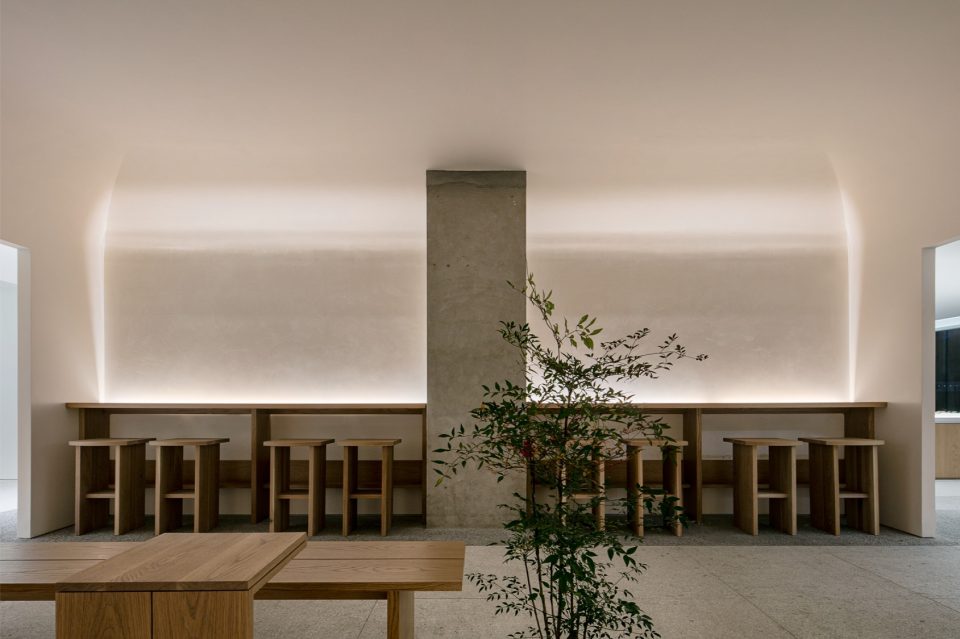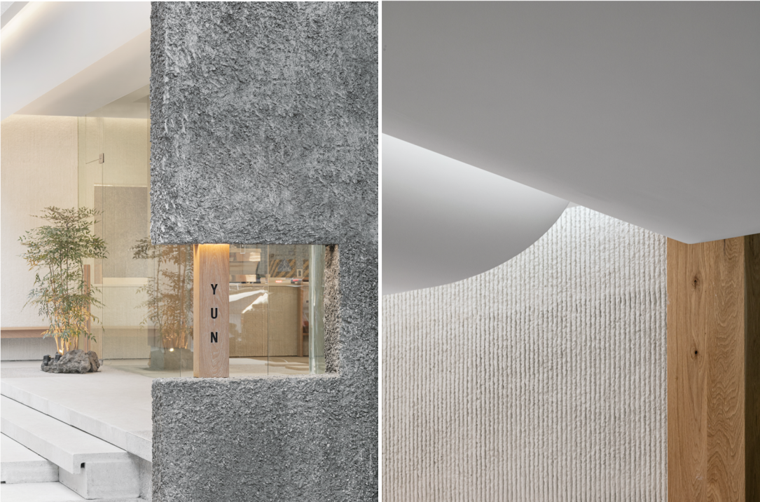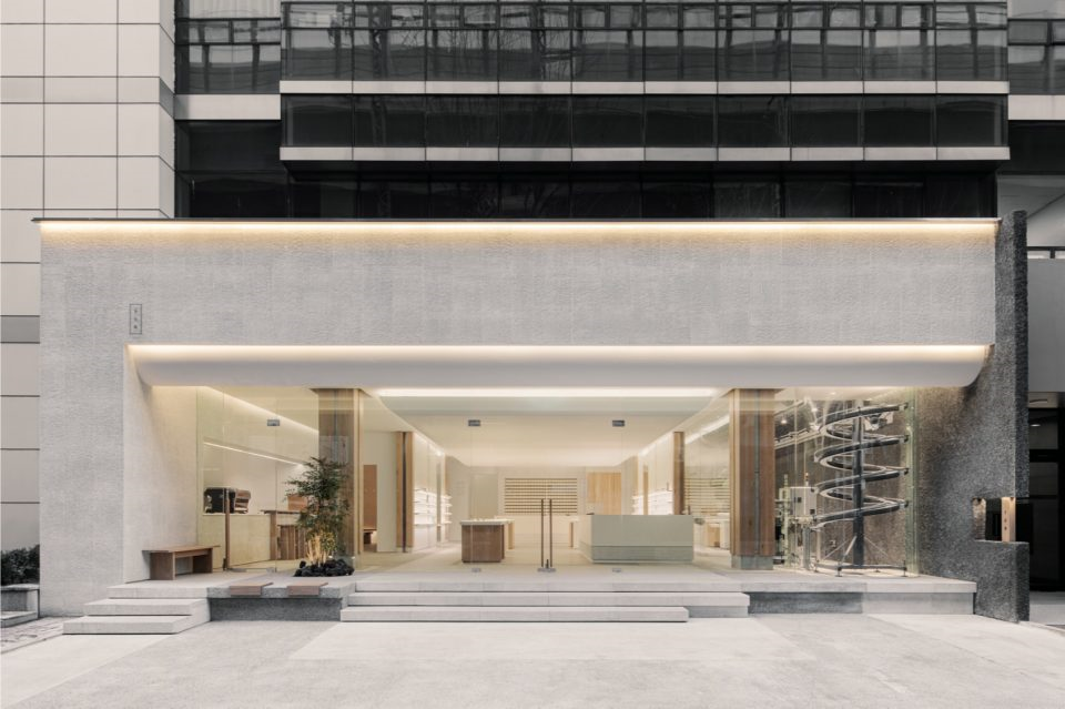'스튜디오 라보토리'가 디자인한 '윤'의 성수동 플래그십은 베를린에서 시작하였지만, 뿌리가 한국인 '윤'이란 브랜드의 특성을 담아내기 위해 '한국적인 요소'를 찾는데 많은 고민을 했다고 합니다. 그렇게 해서 잡은 컨셉은 한국의 단색화와 백자의 뉘앙스를 차용한 동양의 미니멀리즘으로 기계적인 정교함과 아날로그의 따뜻함을 고루 지니고 있으며 동서양의 서로 이질적인 느낌을 포용하는 윤의 정체성을 잘 표현하고 있습니다.