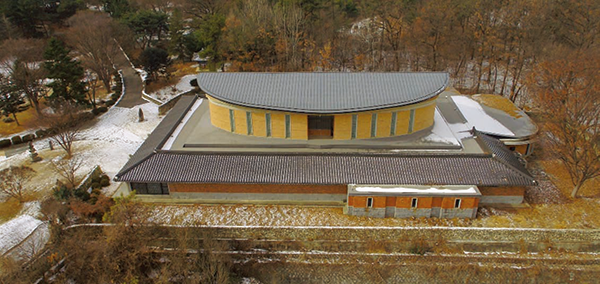 충청도의 낮은 돌담과 ‘ㅁ’자형 한옥에서 영감을 받아, 한옥 구조를 그대로 살리고 그 지역의 황토를 활용해 직접 만든 벽돌로 지은 공간. 전통적인 방식의 건축을 고민하며, 한국의 ‘미’를 살렸으나 일본의 ‘선’으로 오해 받았던 미술관입니다.