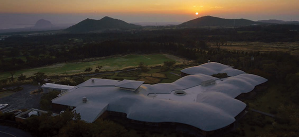제주도를 상징하는 물이란 소재를 주제로 건축한 미술관으로, 사각의 강인한 입방체에 제주도 형상의 타원형을 도려내어 하늘의 움직임을 수면에 투영시켰습니다. 수변에는 이타미 준이 직접 골라 배치한 돌 오브제를 마치 벤치와 같이 놓아 두어 사람들이 그 돌에 앉아 무심(無心)이 되었으면 하는 그의 바람을 담아냈습니다. 수 미술관은 수풍석 뮤지엄 중 가장 인기가 많은 곳입니다.