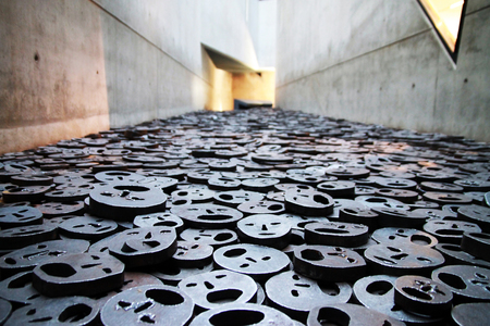 관람객은 각기 다른 유대인의 얼굴을 형상화한 주철 조각을 밟고 지나갊으로써, 당시 나치에게 무참히 학살된 유대인의 참혹하고 참담했던 현실을 온 몸으로 느끼게 됩니다.